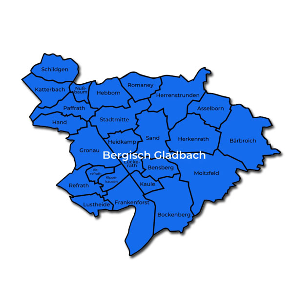 Unsere Monteurwohnungen Bergisch-Gladbach sind zentral gelegen.